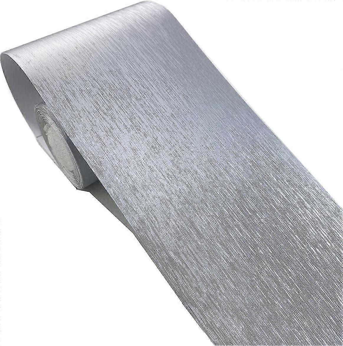 Brushed Imitation Metal Wallpaper Border Self-Adhesive Waterproof Decorative Border (Silver, 10cm x 5m)