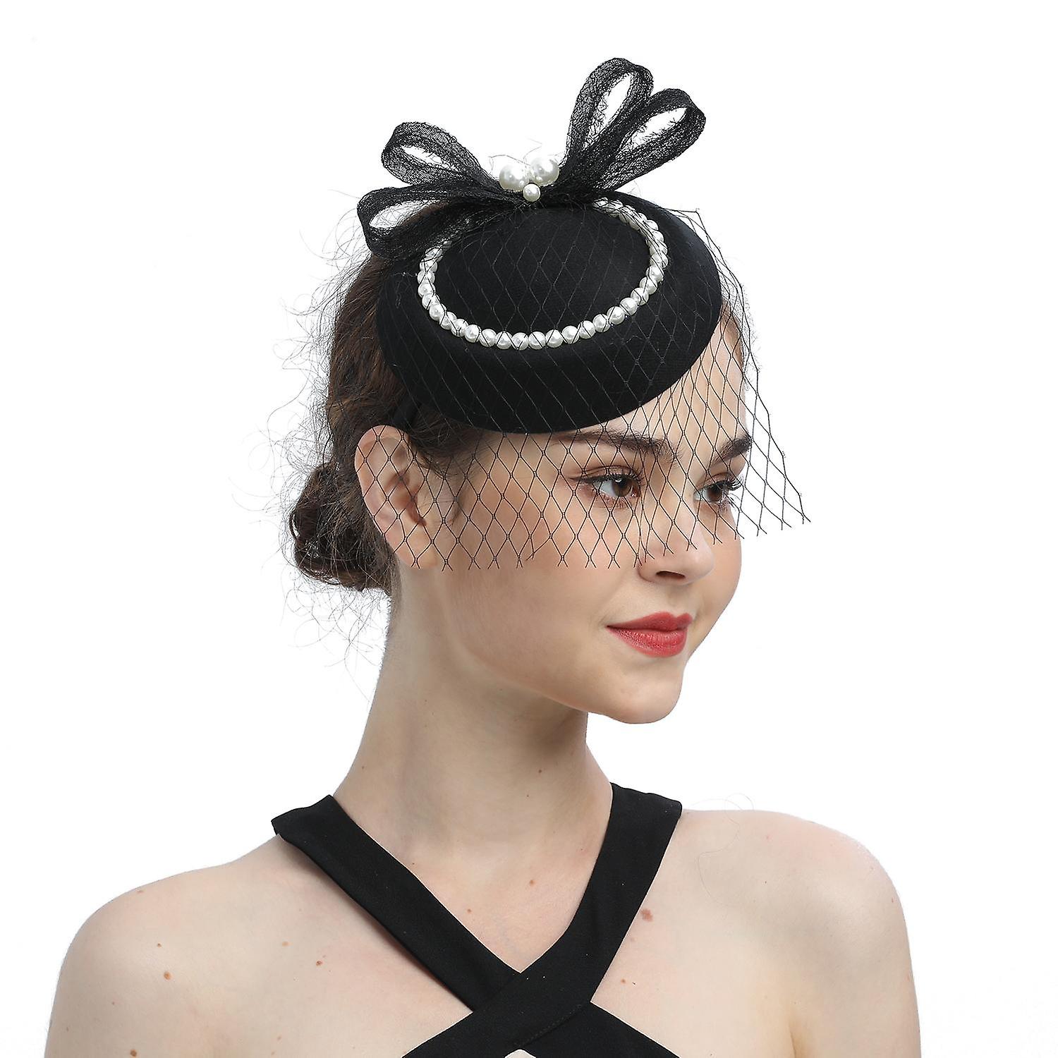 Vintage Veil Fascinator Hat for Women Tea Party Kentucky Fascinator Derby Hat Pillbox Hat Feather Fa