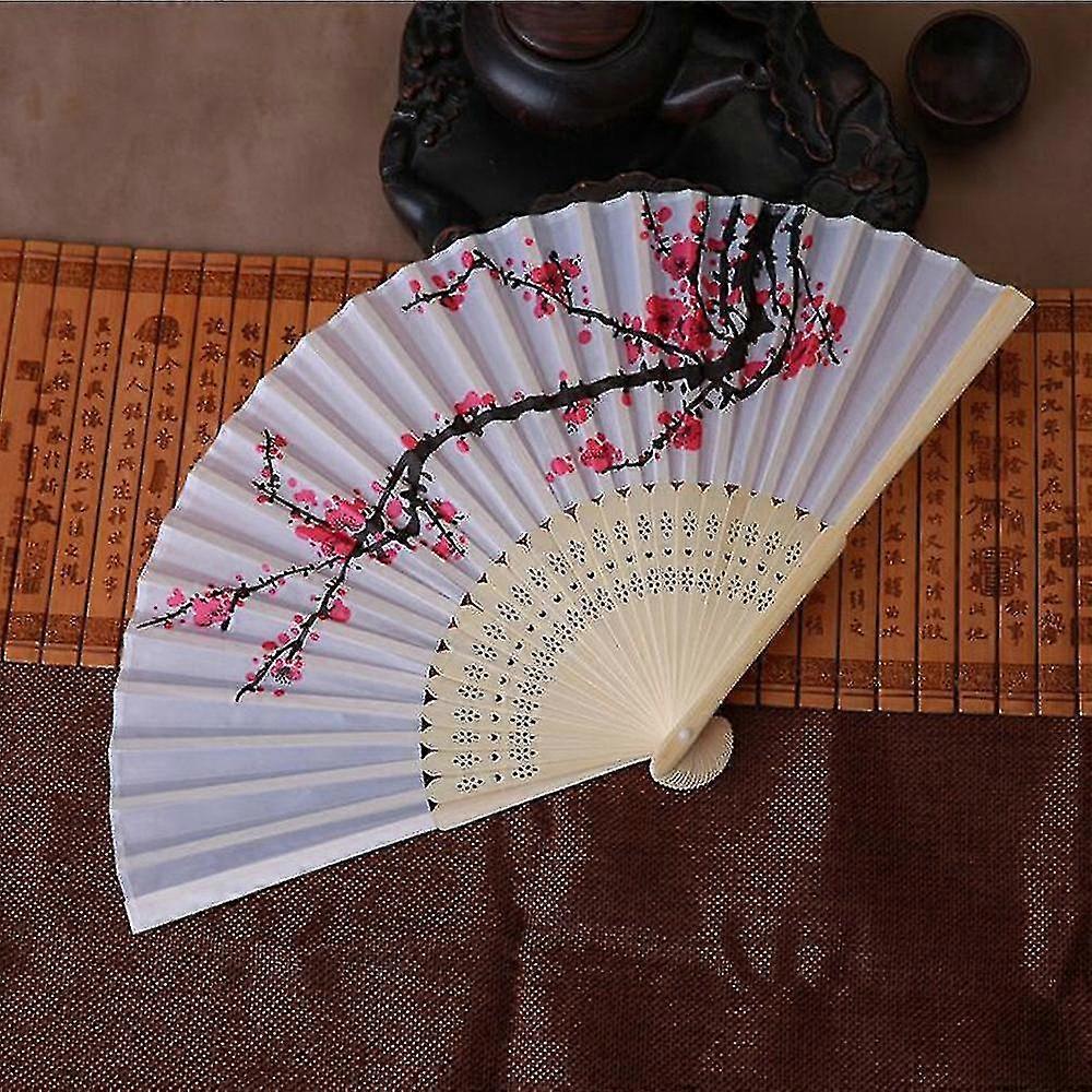 Vintage Bamboo Folding Hand Held Flower Fan Chinese Dance Party Pocket Gifts Chinese Feng Shui Ink Painting Plum Blossom