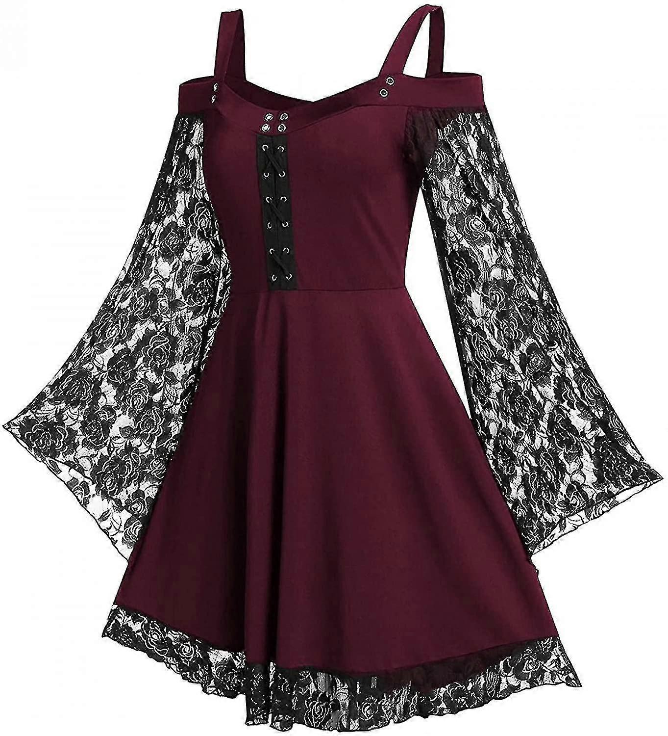 Vintage Lace Women Dress Plus Size Goth Bandage Ladies Cold Shoulder Sexy Dresses