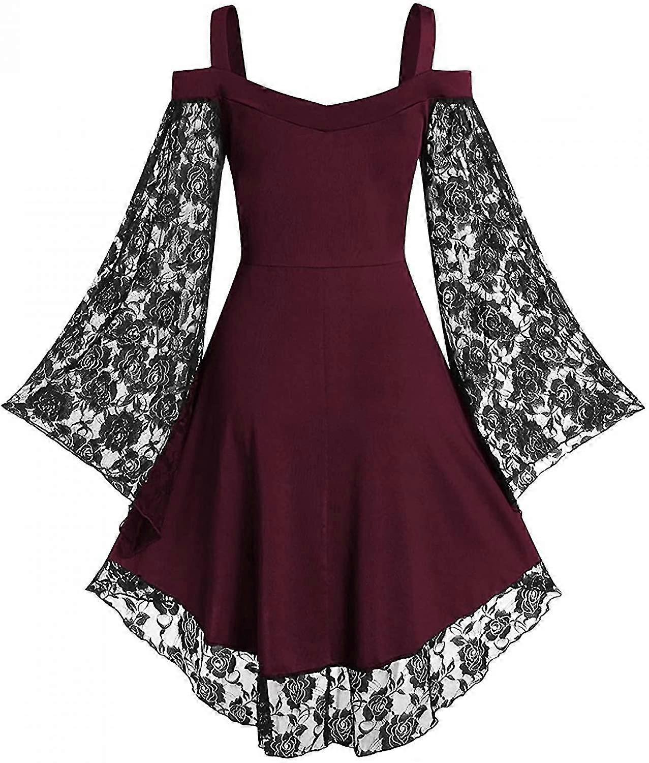 Vintage Lace Women Dress Plus Size Goth Bandage Ladies Cold Shoulder Sexy Dresses
