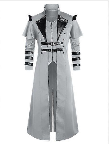 Vintage Men's Gothic Steampunk Long Jacket Trench Coat Retro Medieval Warrior Knight Overcoat Male Victoria Long Coat Plus Size