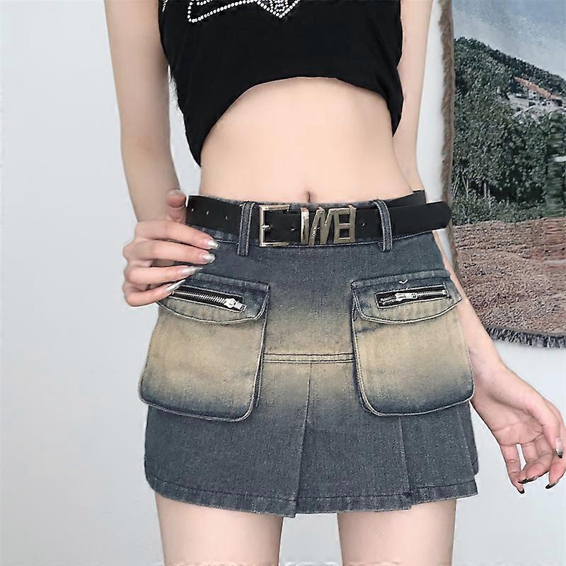 Vintage Distressed Miniskirt Women 2023 New American High Street Niche Fashion Sexy Denim Skirt Summer High Waist Bag Hip Skirts