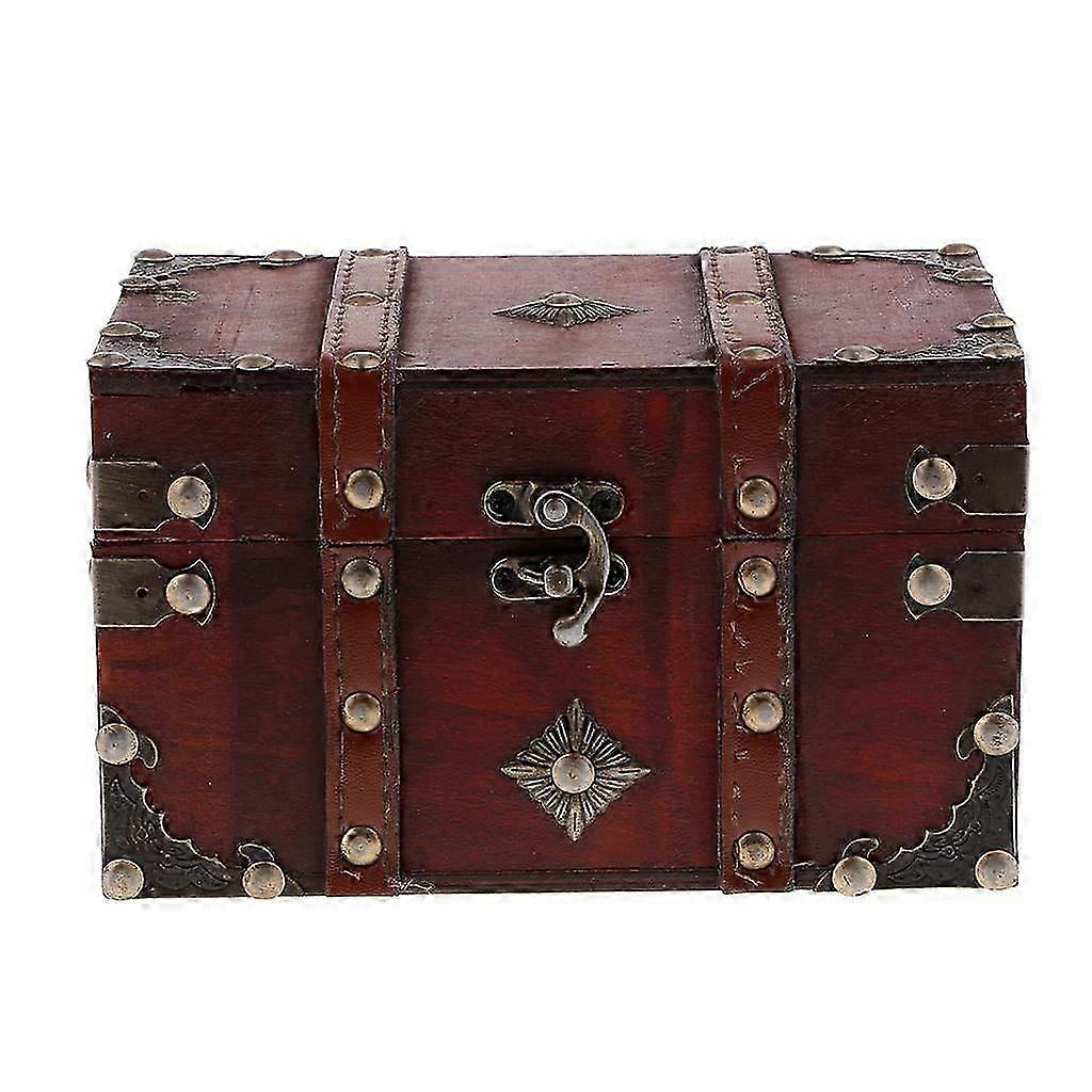 Vintage Wooden Jewelry Storage Case Treasure Chest Box Home Table Decor