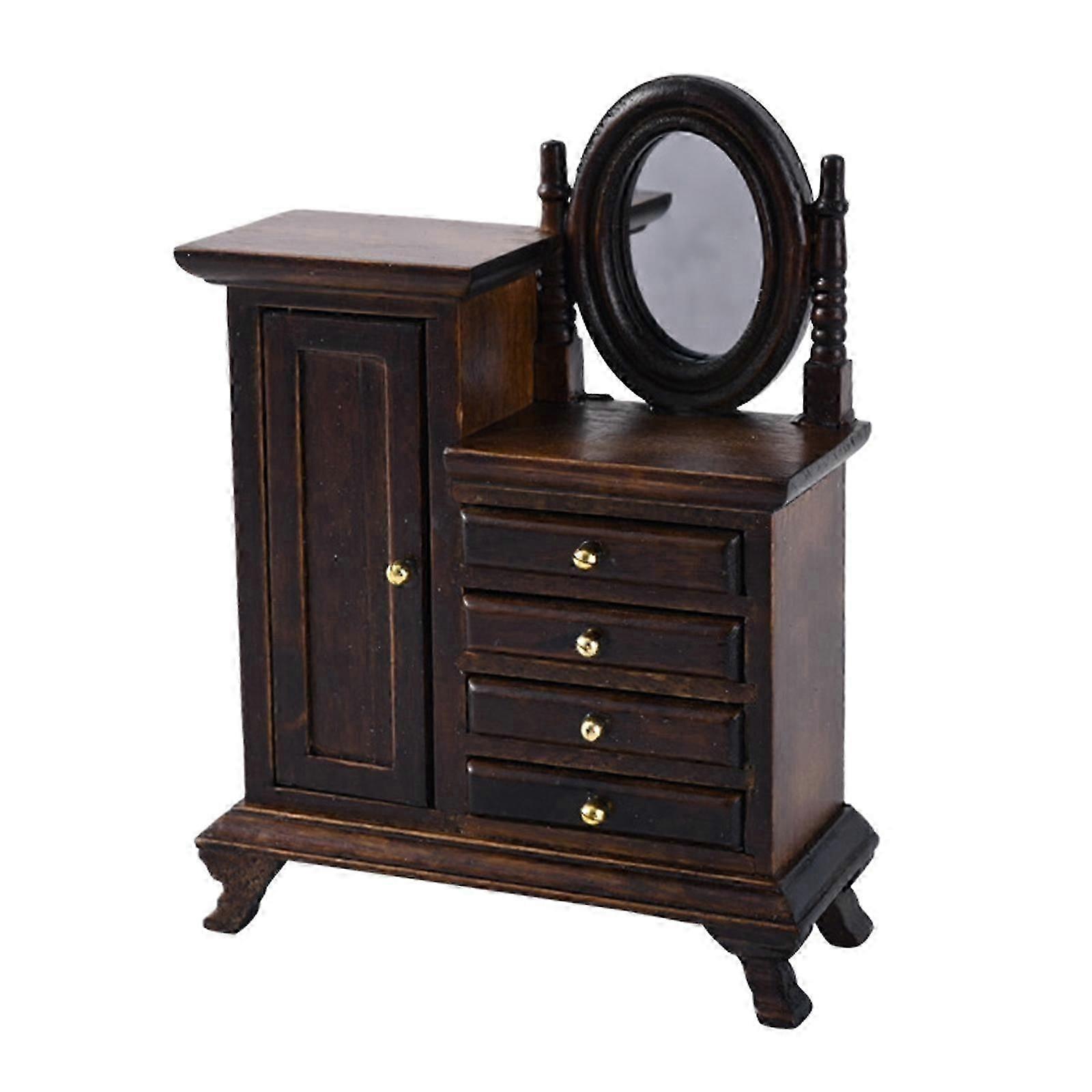 Vintage Dollhouses Accessory 1/16 Miniature Vanity Table with Working Drawers for Dollhouses Scene Display Decoration walnut color