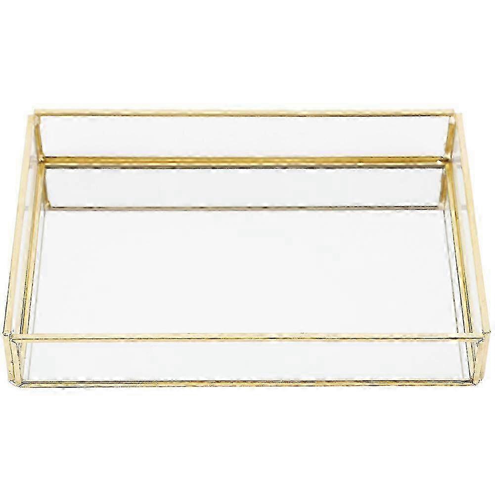 Vintage Metal Glass Storage Box Gold Tray Jewelry Cosmetics Display Boxes (Small Size)