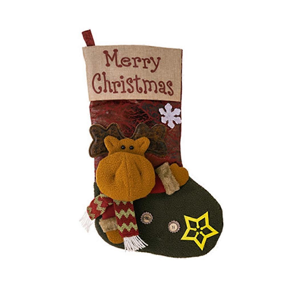 Vintage Christmas Stocking Large PU Leather Socks Gift Candy Pouch Storage Bag Festive Ornament Decor Party Supplies