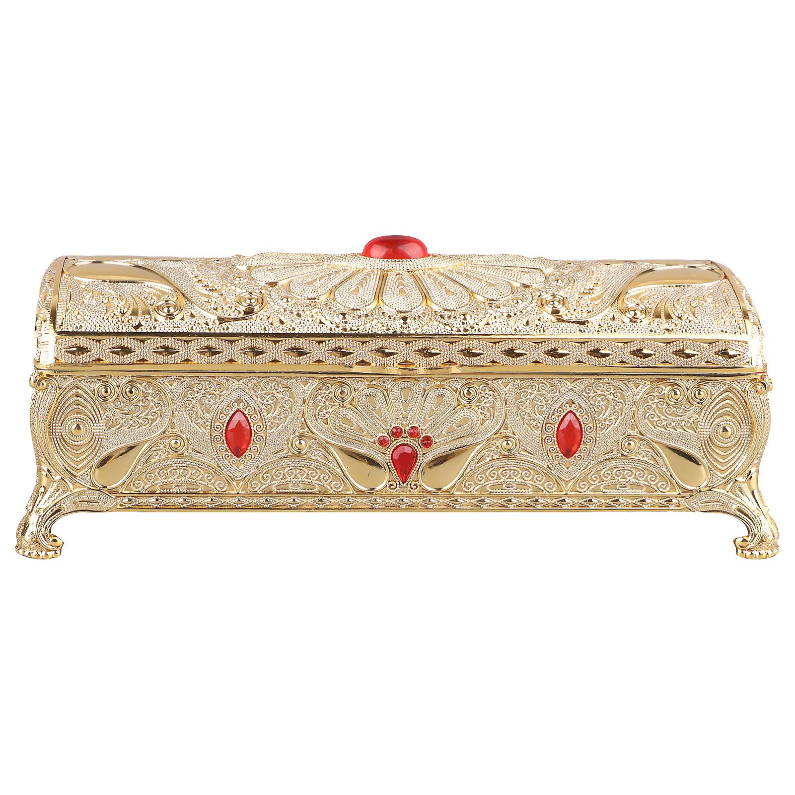 Vintage Jewelry Box Carved Elegant Gold Colorfast Alloy Soft Velvet Lining Trinket Storage Box for Dressing Table Shelf