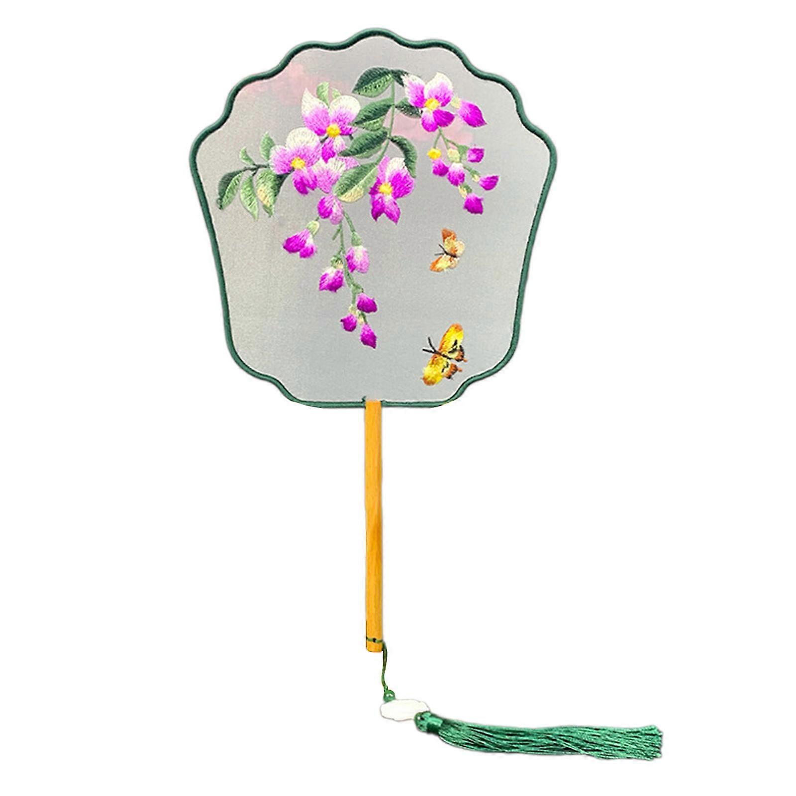 Vintage Hand Fan Chinese Silk Embroidered Fan Home Decorations Double Side Dance Fan with Tassels Long Handle Festival