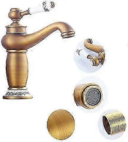 Vintage Single Handle Brass Ceramic Faucet with Blue White Porcelain Floral Design Long Neck Kitchen Sink Tap for Cold Hot Water