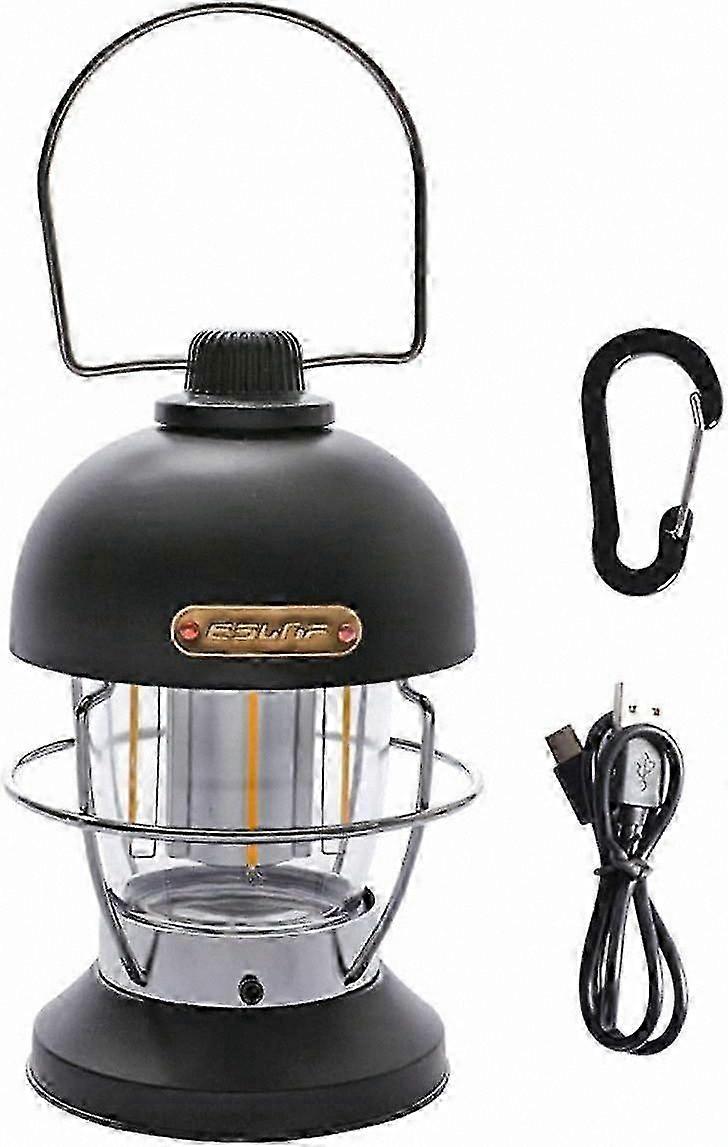 Vintage Style Rechargeable LED Camping Light for Outdoor Adventures, Dimmable Tent Lantern, Black Cage Design