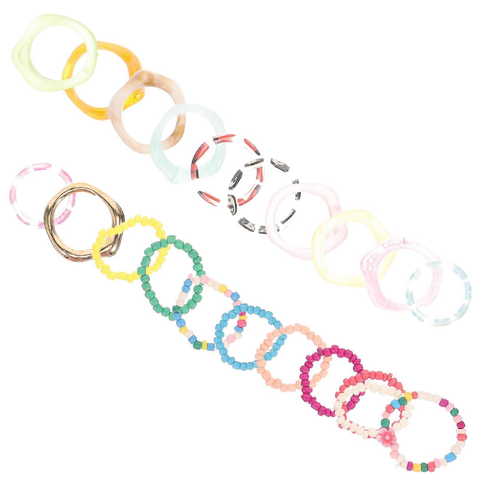 Assorted Color Resin Finger Rings for Decor 21Pcs Stackable Rings Jewelry Set