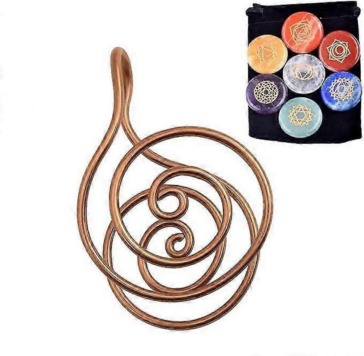 Copper Rings for Women Healing Spiral Hand Rings with Crystals, Handmade Copper Ring Set for Energy Healing, Chakra Balancing, Yoga, Breathwork & Spir