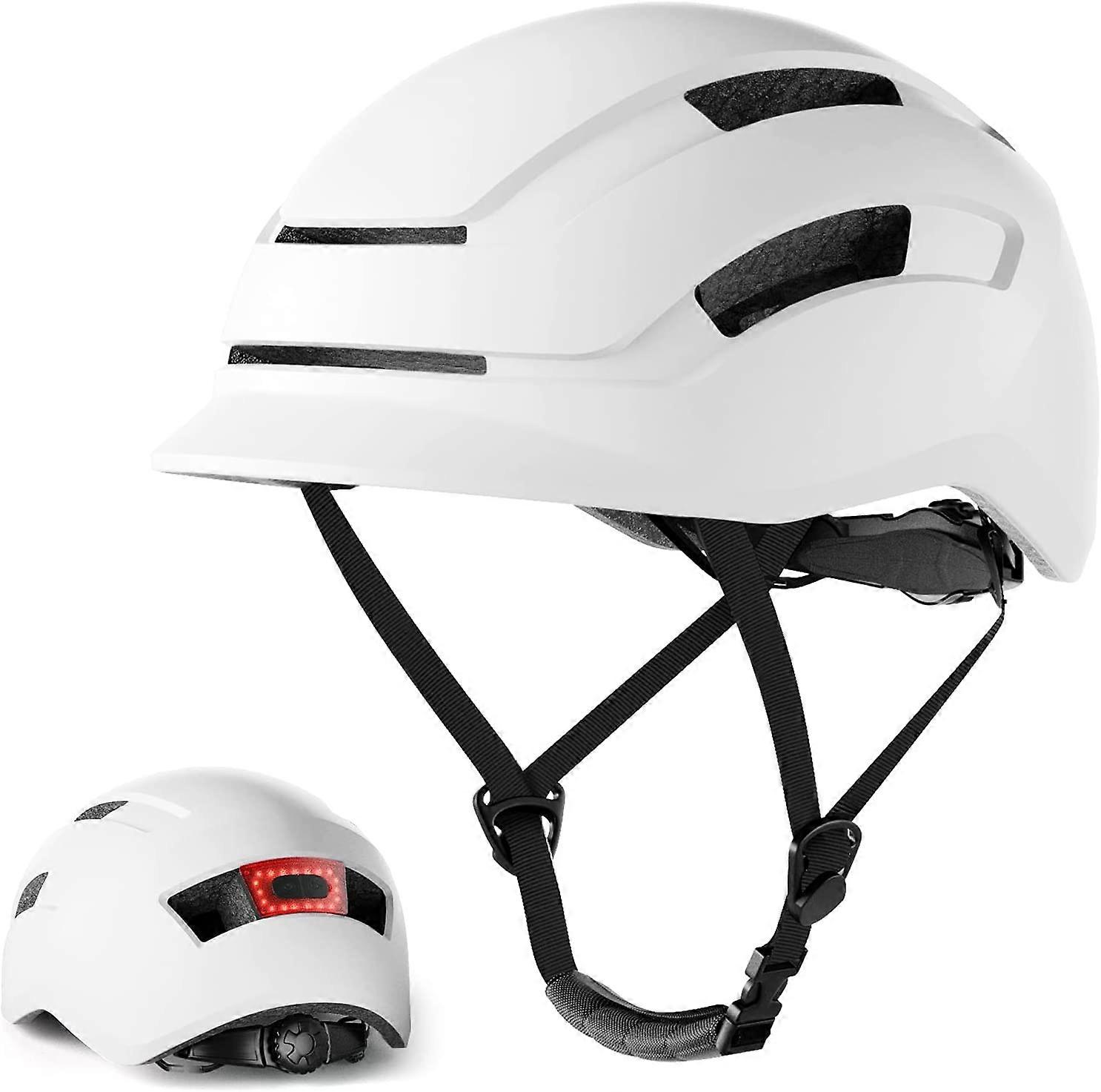 Adult Bike Helmet Men Women Cycling Bicycle Helmet with Rear Led Light for Urban Commuter Adjustable Scooter Medium White2 Pack