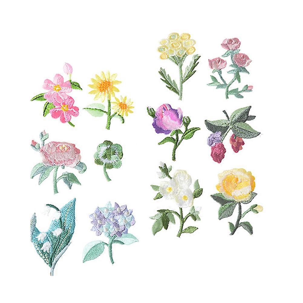 Floral Sew On Patches Flower Patches Embroidery Flowers Handmade Crafts 3.80X3.50X0.20CM Heat Sealant Backing 12Pcs