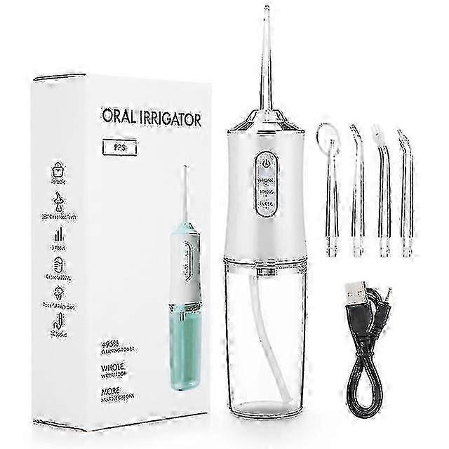 Portable Dental Water Flosser with USB Rechargeable Water Jet, 4 Jet Tips, 220ml Capacity, 3 Modes, IPX7 Rating, 1400rpm - Suitable for Oral