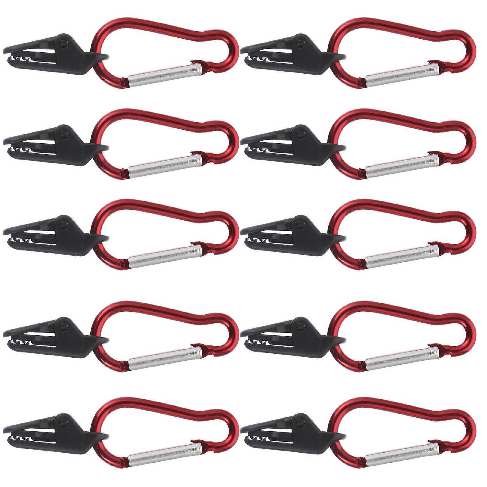 Do you still worry about your tent will be damaged by strong winds? Or worry about the other clip that will not tighten your tarp?Now, get our tent clamps, you don’t need to worry about them just slid right off again. You can use for all of your outdoor camping tents, awning, , tarps, canvas, awnings, boat covers, swimming pool covers, temporary shelters, or any fabric cover needing extra hold down points, etc. Features - Color: Red. - Material: Aluminum alloy and plastic. - Size: 7.20 x 2.20 x 0.90cm/ 2.83 x 0.86 x 0.35 inch. - mouth design, these heavy-duty tent clips using push-type design to clamp various thickness tarps tightly. - Teeth of clips are stable and safe, they can prevent the tarpaulin from falling. - The tent trap clip is made of plastic material, it's waterproof, weather-resistant, tear-resistant, lightweight and durable. - Tarp clips can withstand icy temperatures and bite on or wet materials. - It can clamp the tarp tightly without tearing or damaging it. Instant anchors are provided on the end of the clip, easy to attach to most standard hooks or ropes, no need to hole on the cover. Package list: 10 sets x clips and gourd hooks