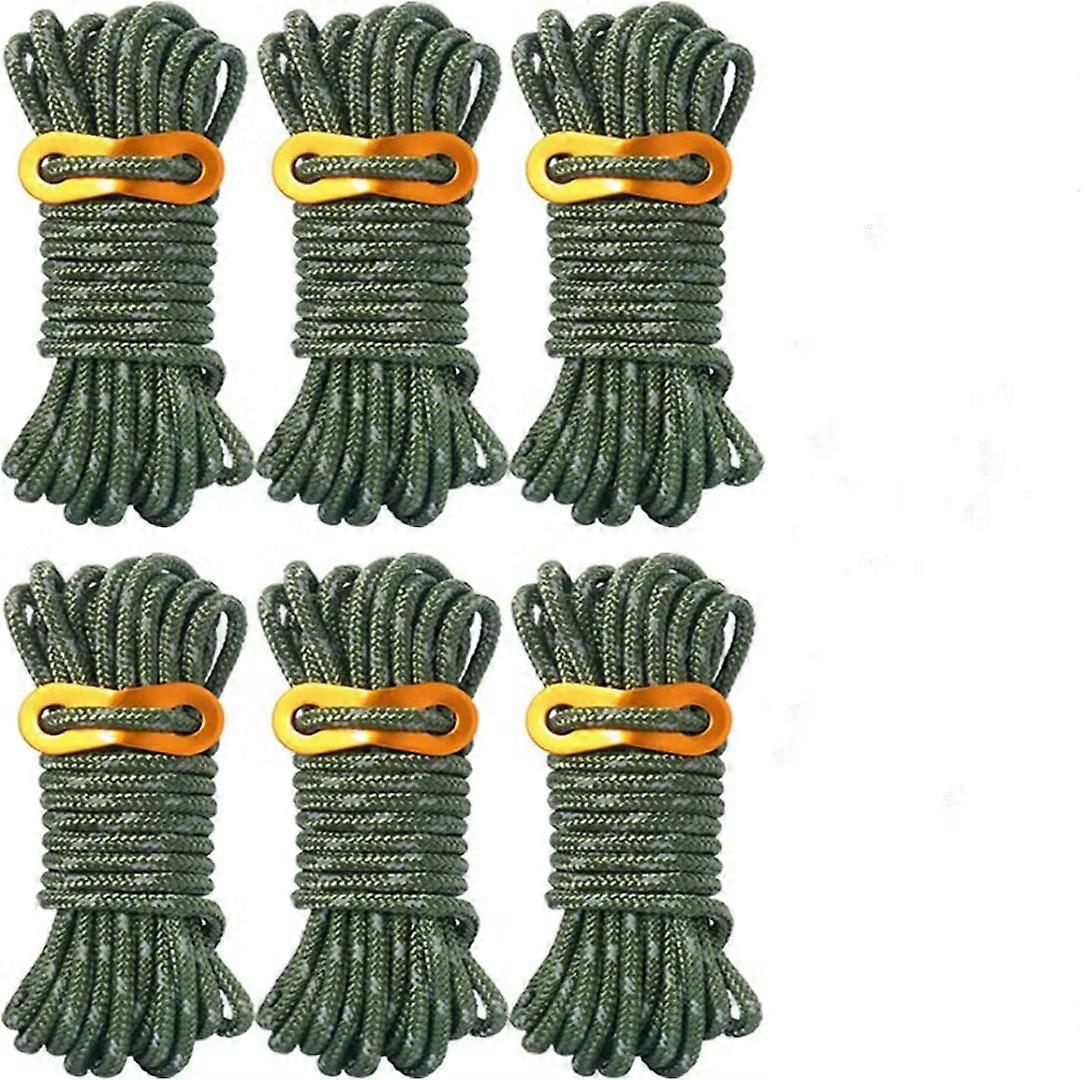 Reflective Tent Guy Ropes Tent Guy Line Heavy Duty Guide Rope with Tensioner Adjuster for Outdoor Camping Hiking Awning Tarp Tents (6pcs,Army Green)