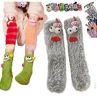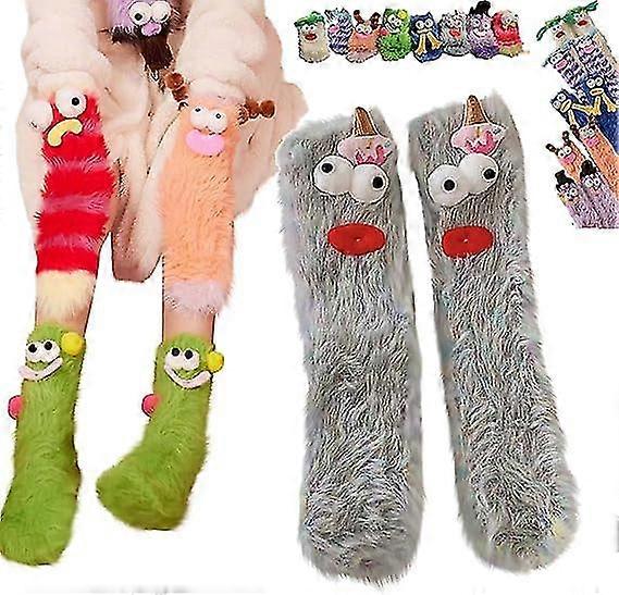 Warm Cozy Fluffy Cartoon Monster Socks, Coral Velvet Three-dimensional Quirky Socks, Plush Monster Socks Christmas Socks
