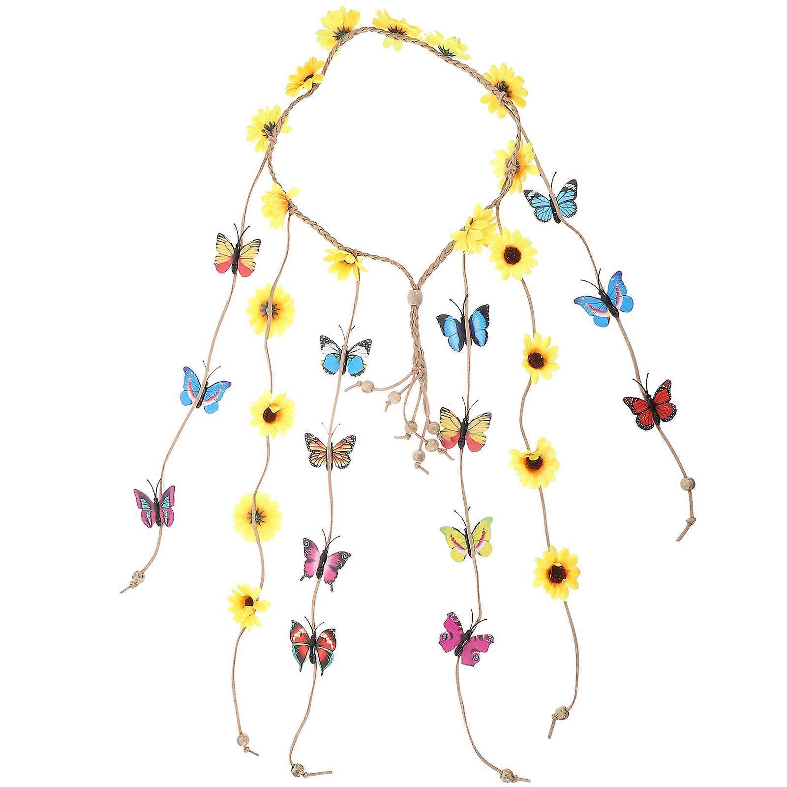 Circular Shape Sunflower Headband Bohemian Tassel Style Yellow 64x3.5cm Size Fashion Statement for Women 1Set