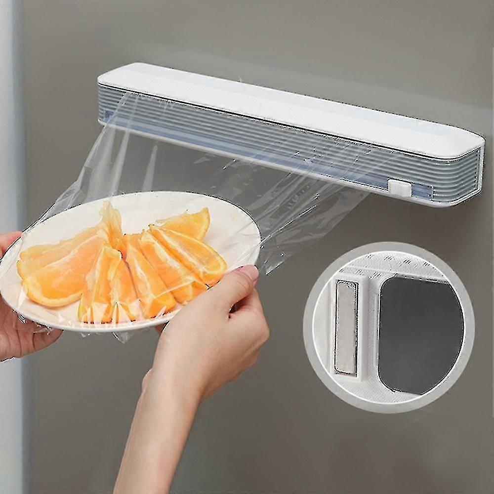 Durable Wall Mounted Suction Cup Food Wrap Dispenser Plastic Cutter Foil Cling Film Storage Holder Box
