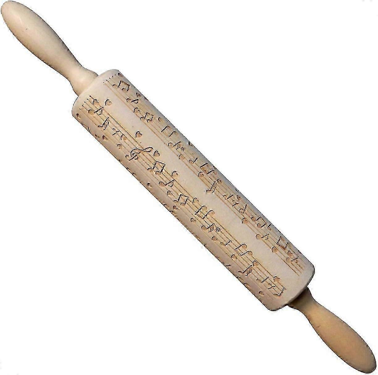 Christmas Wooden Rolling Pins, Musical Notes Engraved Embossing Rolling Pin With Christmas Symbols For Kitchen Baking YGWL