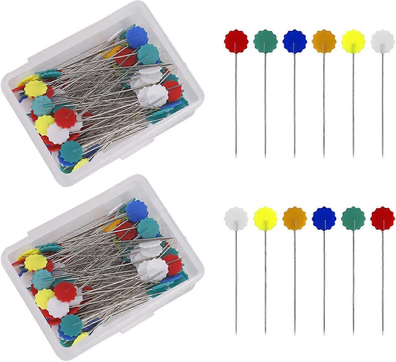 Flower Head Pins, Straight Sewing Pins Assorted Colors Patchwork Pins with Clear Cases for Dressmaker Crafts Sewing Projects 200 Pieces