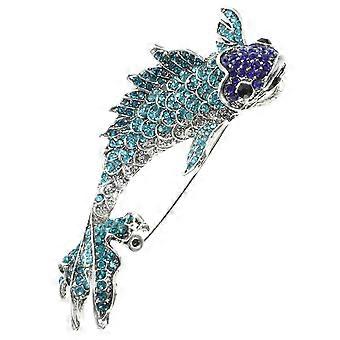 Lapel Pins For Women Koi Fish Brooch Chinese Style Blue 1Pcs
