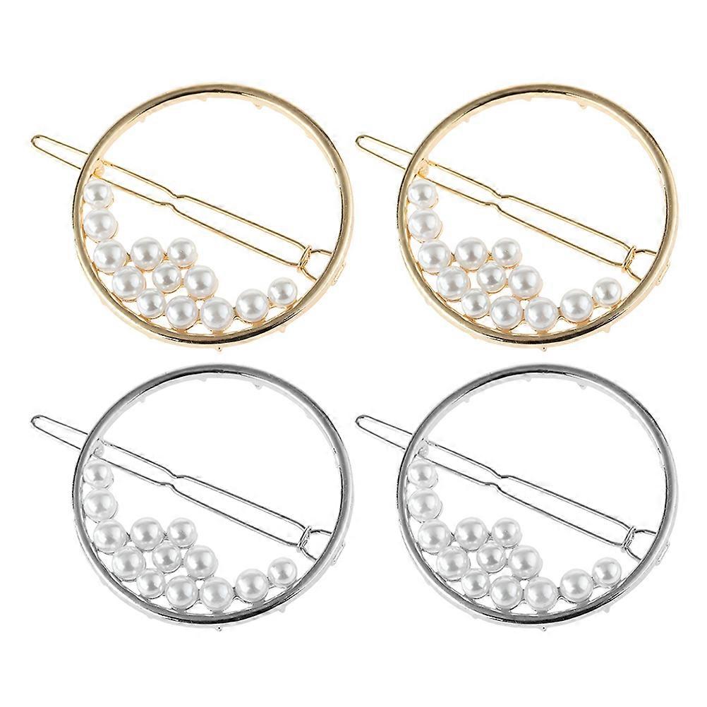 Hair Decoration Pearl Pins Stylish Accessory Silver Tone Round Shape 4Pcs