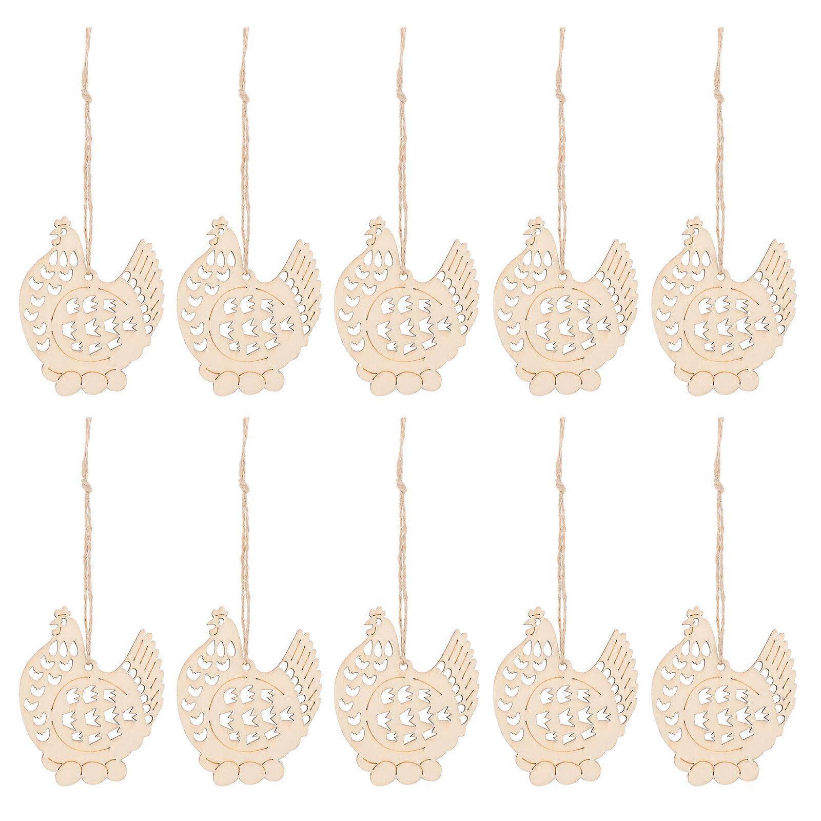 Wooden Hanging Hens with Hemp Ropes for Decor Beige 10pcs Perfect for Crafts and Christmas
