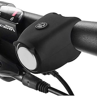 120 decibels,Louder;five possible ringtones,To change the type, press and hold for three seconds,Note: the ringtone may not be loud enough on streets with more cars.Children's bikes may also be used. Water resistant (IPX4) and shock resistant: The electric bell is waterproof and you can use it in rainy days. Attention: Do not immerse it directly in water. The bell is fixed by a hook in the back. the silicone shell is elastic so you can install it on handlebars of any size. Number of parts delivered: 1 Color: Black Size: 11*3.5cm