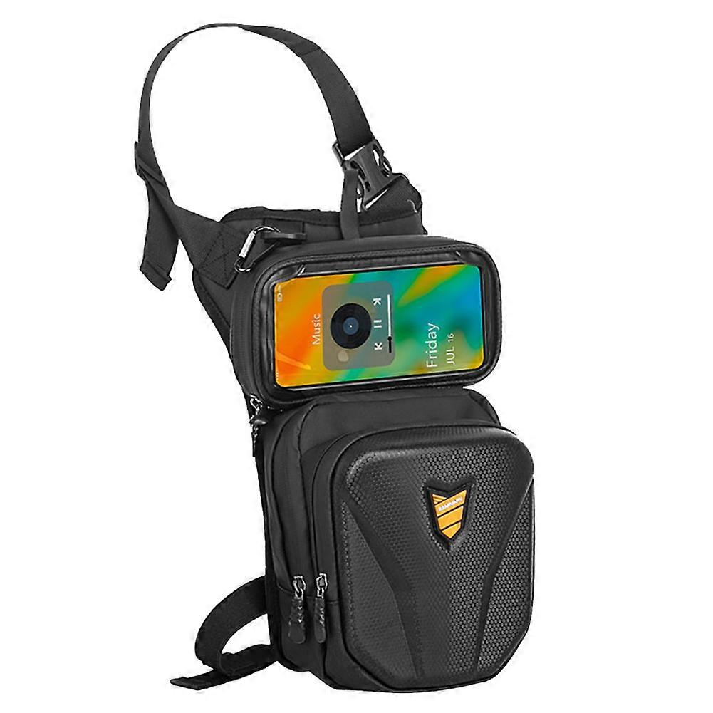 Motorcycle Drop Leg Side Bag Black Motorcycle Bag Hard Shell Outdoor Casual Waist Bag with Detachable Mobile Phone Bag