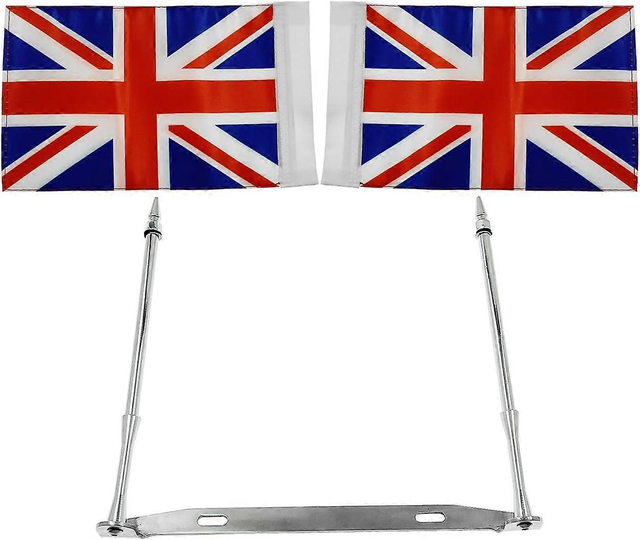 Motorbike Rear Stainless Steel License Plate Frame Double Pole & Double 2 Flags for Harley Honda Universal - UK Flag