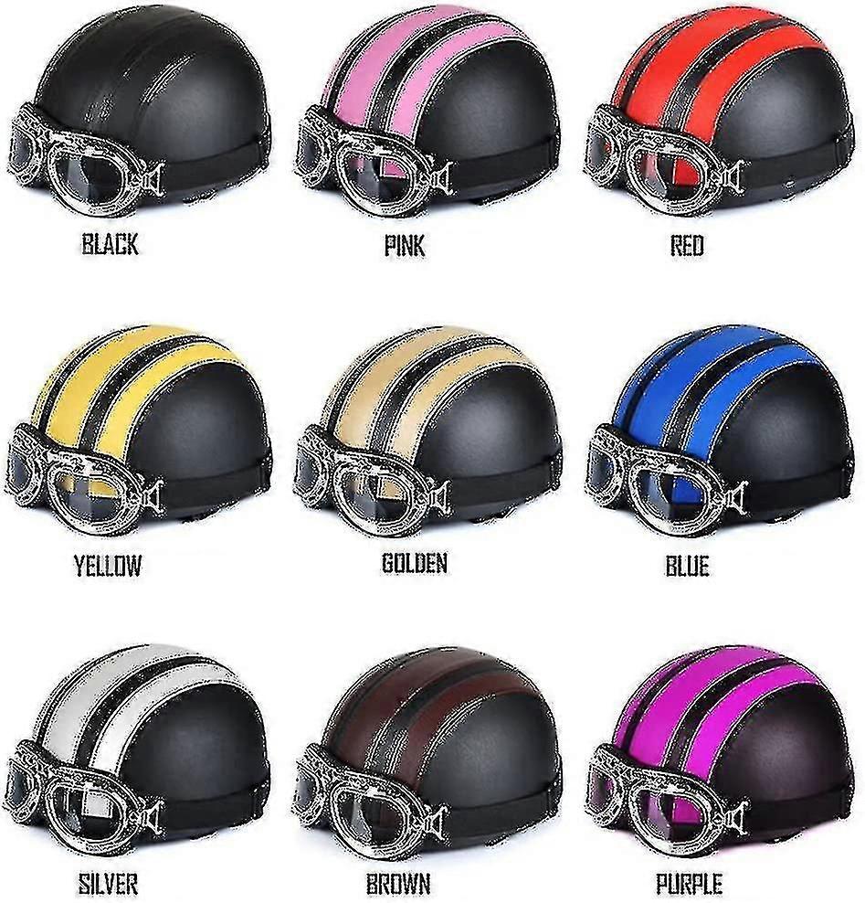 Motorcycle Scooter Open Half-face Leather Helmet With Anti-uv Goggles Retro Vintage Style 54-60cm