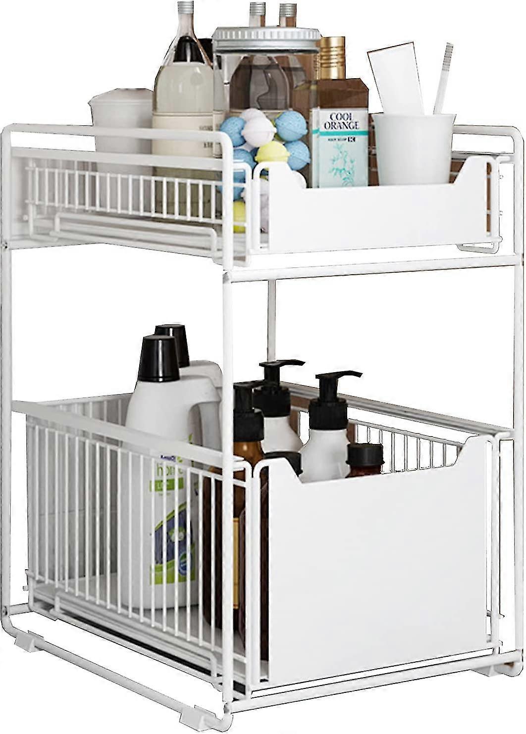 2 Tier Storage Drawer - Sliding Metal Storage Drawer (white)