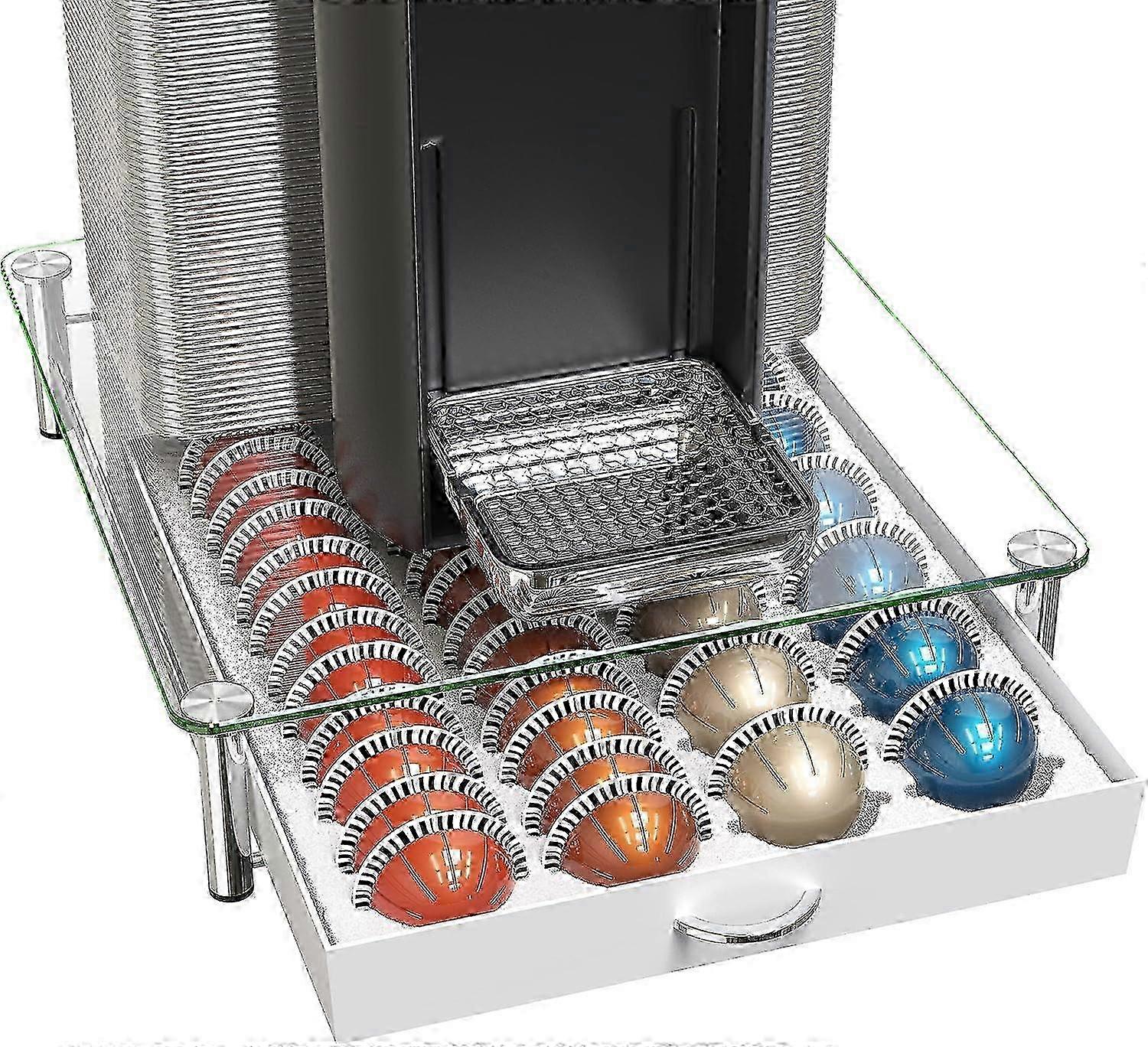 Crystal Tempered Glass Vertuo Pod Holder Drawer, 40 Small Nespresso Capsule Organizer, White White Glass Top