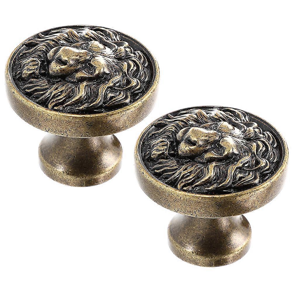 Drawer Pulls Cabinet Handle Pulls Furniture Knobs Light Brown Lion Head Shape Durable 2Pcs
