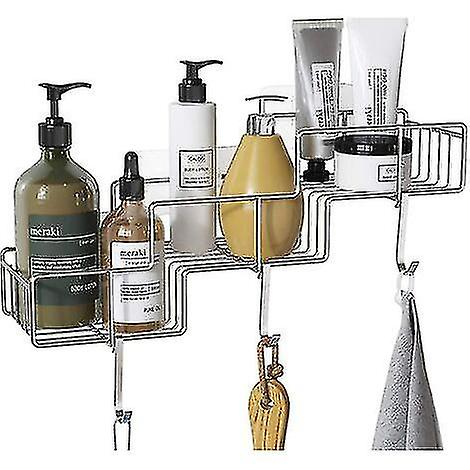 Shower Caddy With Hooks For Shampoo Conditioner Bathroom Shelf Storage Organizer No Drilling Adhesive Wall Mounted