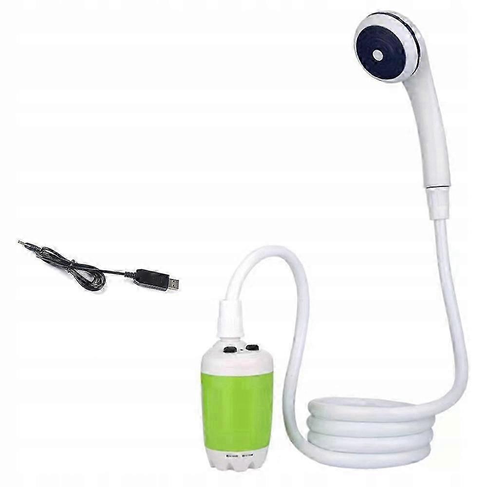 Portable outdoor shower, rechargeable shower, with USB cable Scope of application: construction shower, animal cleaning, car wash, outdoor shower Product parameters: Product net weight: 500g (1.1Ib) Product voltage: 3.7V Product current: 2.5V Water flow: 4-5L or Min Product power supply: built-in battery Battery capacity: 5200 mAh Handling time: 120 minutes Charging method: Any 5V2A USB output Working temperature: 10 -50 Charging time: 6H The length of the entire machine is 2.1 m Characteristics: No need to plug in, built-in battery Simple to use with one button Long battery life, charging can be used for more than 60 minutes Large water flow, close to domestic water heaters Three kinds of hanging, nail-free, durable and waterproof Packing List: Hook, shower cubicle, water pipe, shower USB cable
