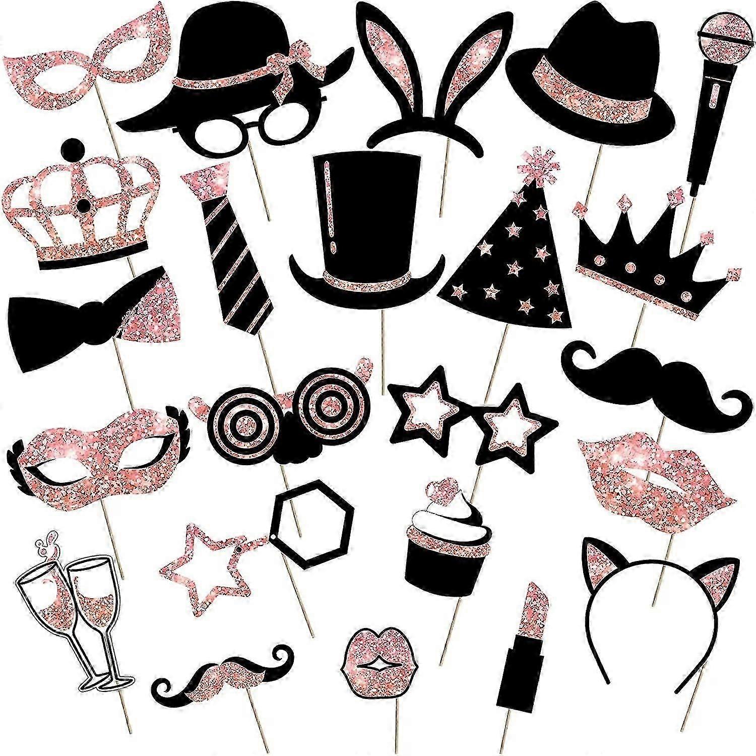 Birthday Props and Signs, Rose Gold Birthday Party Selfie Props Kit with Sticks for Girls Women