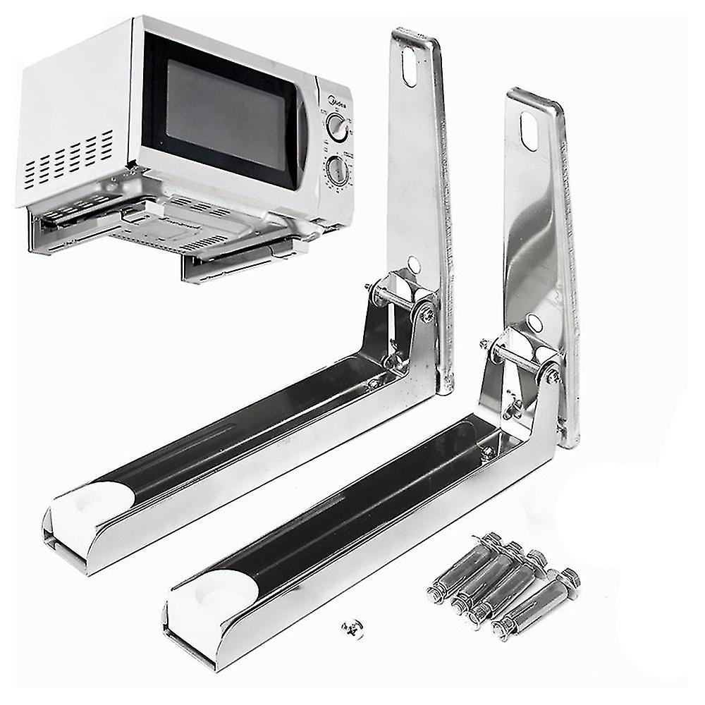 Support Frame Steel Foldable Stretch Shelf Rack Microwave Oven Wall Mount Bracket Stainless Silver