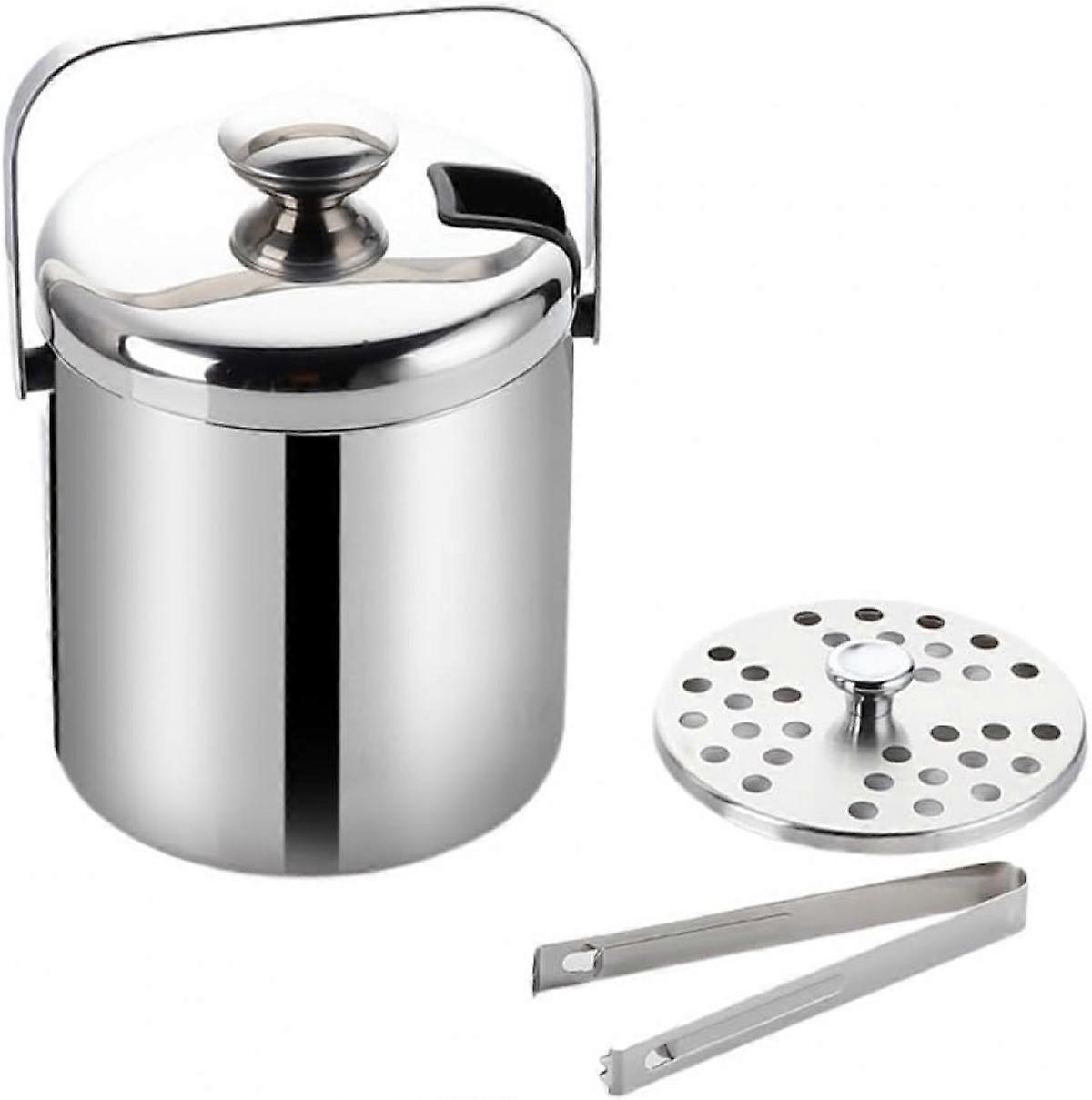 Insulated Ice Bucket With Lid And Tongs,drinks Cooler Chiller,stainless Steel Ice Bucket1300ml