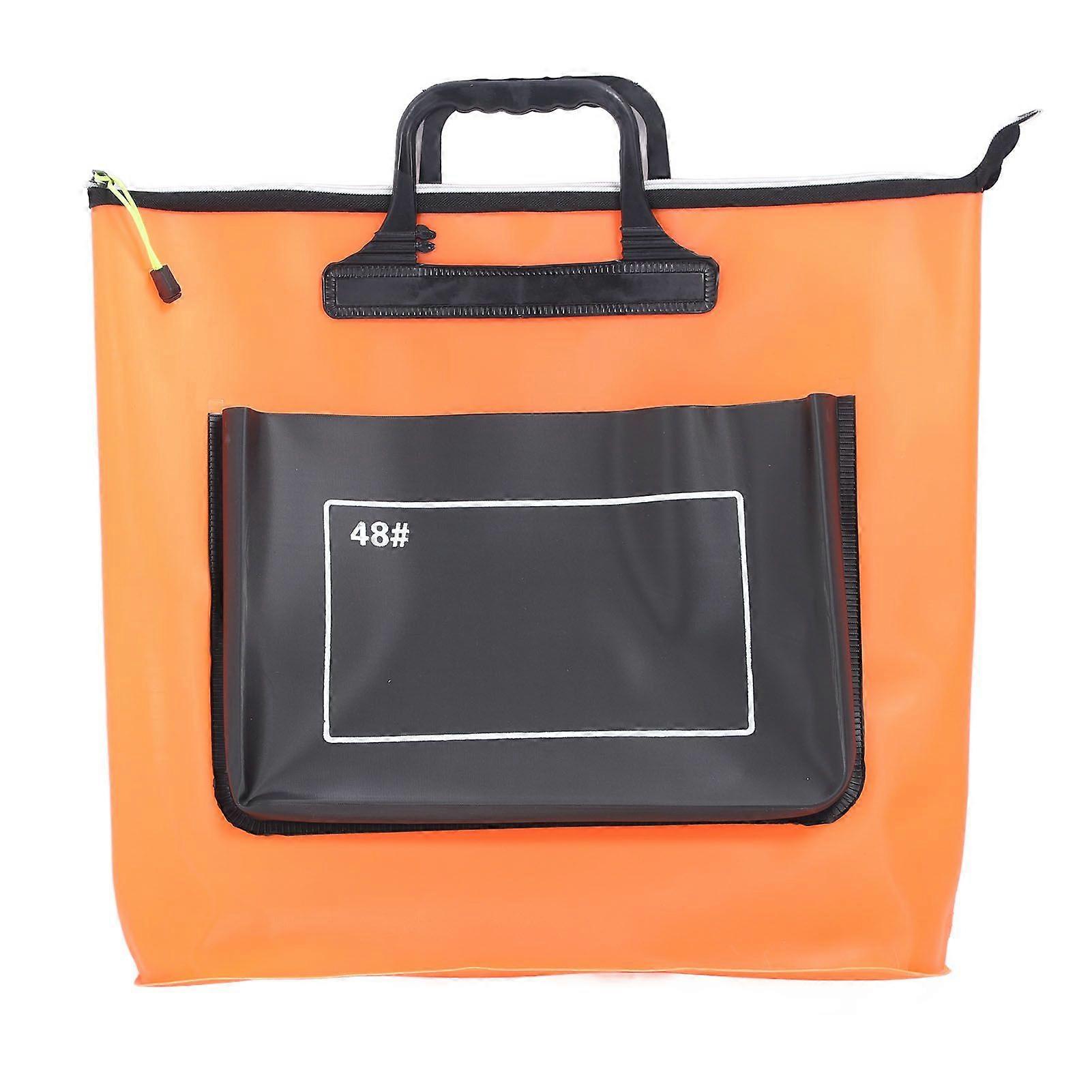 Folding Fish Bucket 48L EVA Thicken Waterproof Anti Leakage Zippered Side Pocket Design with Handles Live Fish Container for Outdoor Camping Orange