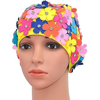 Manual Rhinestone Floral Petal Retro Style Swim Cap Bathing Caps For Women