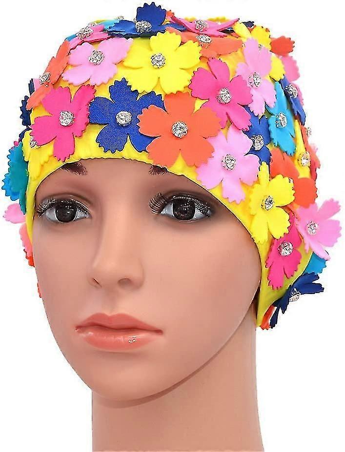 Manual Rhinestone Floral Petal Retro Style Swim Cap Bathing Caps For Women