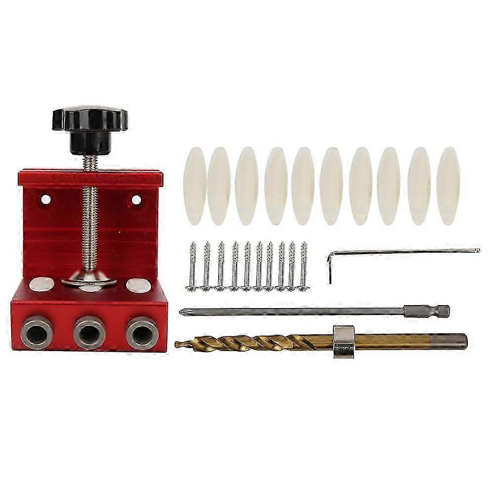 Pocket Hole Drill Guide Aluminum Alloy Household Woodworking Hole Punch Tool Red/BlueRed