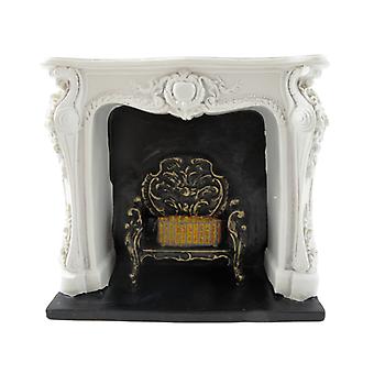 دمى البيت الروكوكو الأبيض الموقد مع الأسود & الذهب راتنج صر 1:12 أثاث