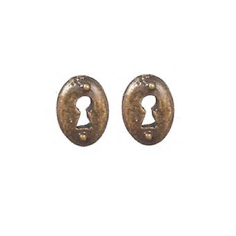 دمى البيت العتيقة النحاس البيضاوي لوحات ثقب المفتاح مصغرة 1:12 باب الأثاث