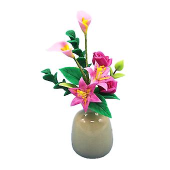 دمى البيت الوردي الورود الزنابق في زهرة الزهرية عرض ملحق الديكور مصغرة