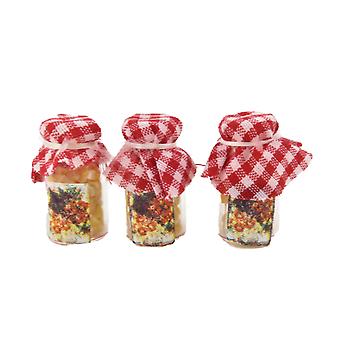 دمى البيت مقدد العسل الجرار الأحمر Gingham يتصدر مطبخ متجر ملحق